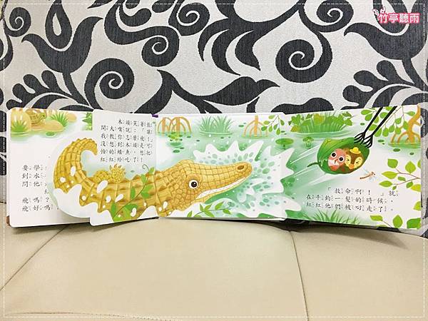 後來鱷魚騙她要教她飛,結果卻是張大了嘴巴用要把紅紅吃掉...!! (有氣勢的三跨頁)