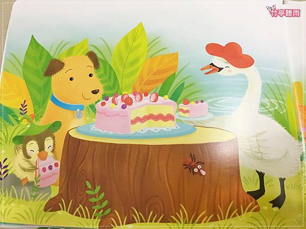 最後天鵝奶奶請他們吃蛋糕,他們也覺得幫助人很開心。