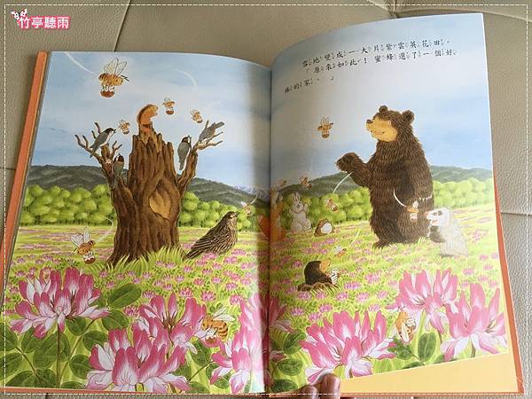 大熊與睡鼠品嘗著蜜蜂送來的蜂蜜,都覺得有春天的味道哦。