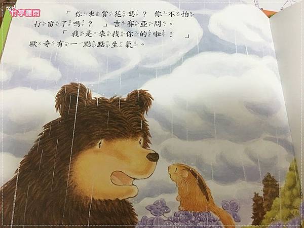 而且很大本,全開的圖片讓下雨或下雪都很有氣氛,打雷與洪水的畫面很有魄力,滿山滿谷的花也很美。
