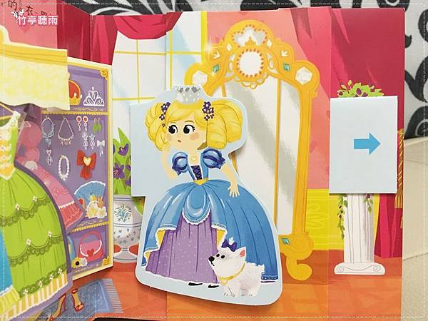公主從穿衣鏡背後走出來,轉眼間就換上了粉紅色的閃亮禮服啦~