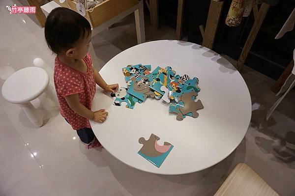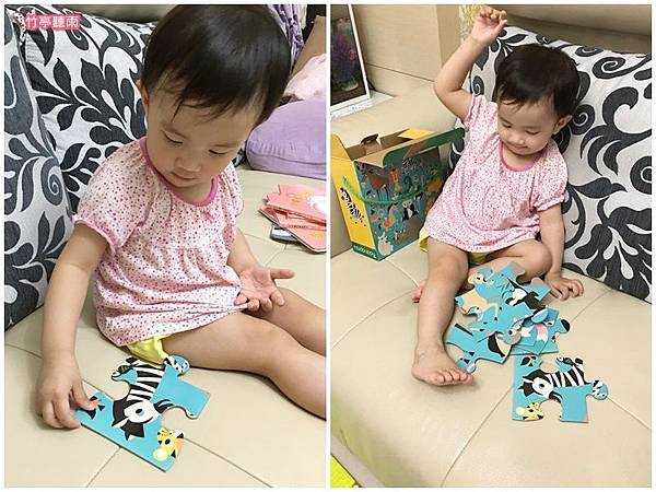因為拼圖尺寸很大可以在地板上玩,而且無底板可以訓練小孩辨識圖形的連接,