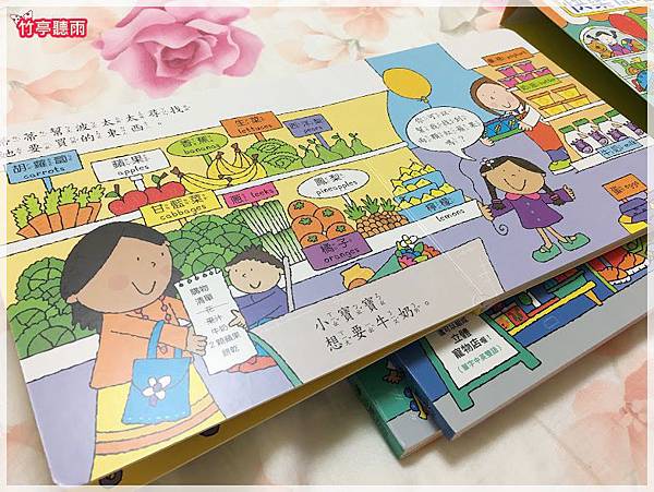 硬頁書的前八頁有簡單的劇情,例如超級市場這本是波太太拿著清單在尋找要買的東西。