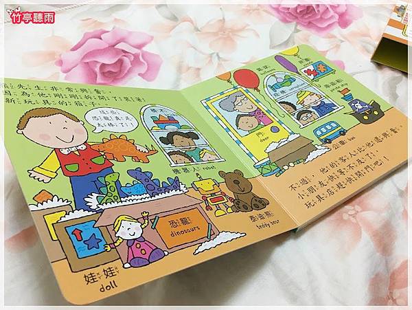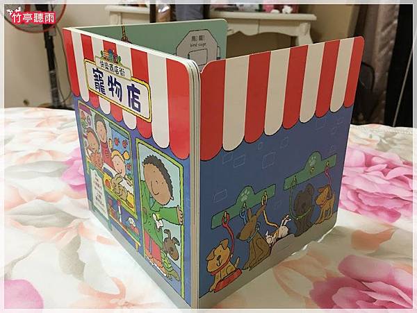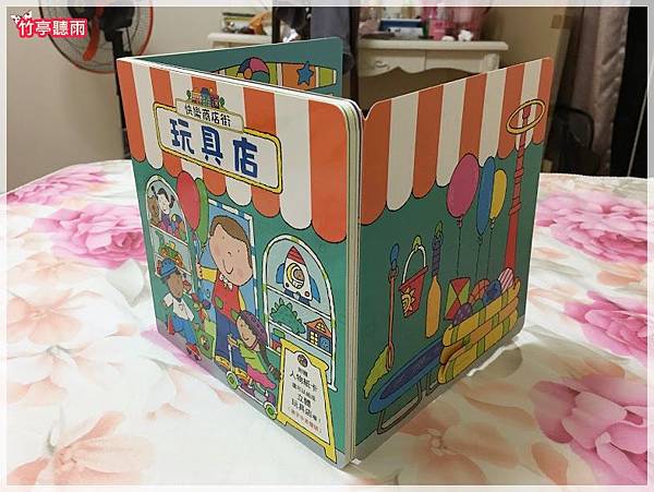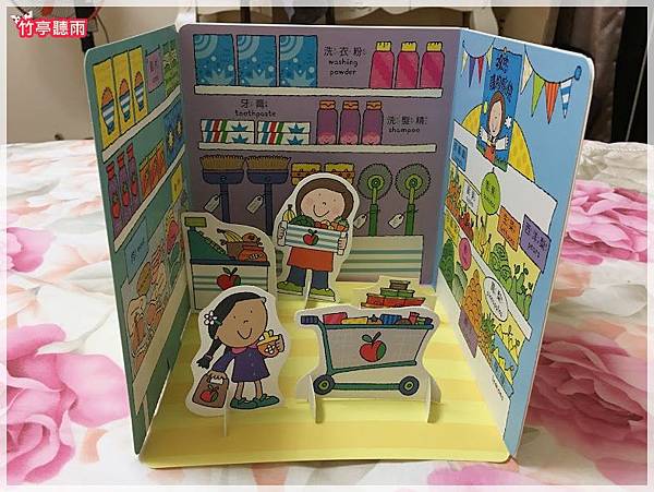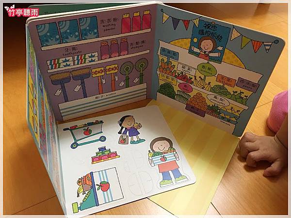 ▼ 總共十頁,是硬頁書,但最後兩頁可以摺疊成商店站立起來,搭配附的紙娃娃玩開店遊戲。