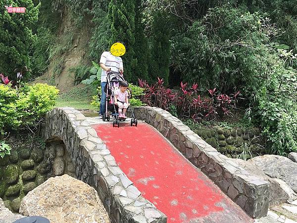 園區裡有許多的平緩樓梯步道,推推車下坡OK,但上坡會很麻煩,老公後來直接扛推車走草皮了ORZ