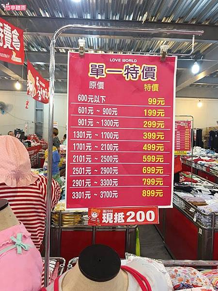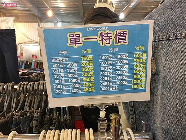 前排的花車或吊桿上的衣服是用藍色標折,折數較少比較貴。