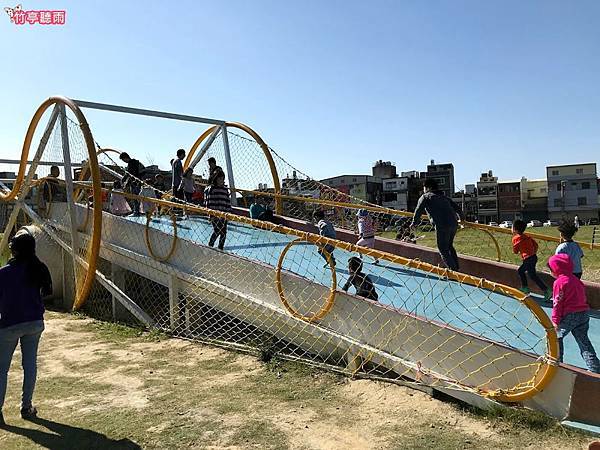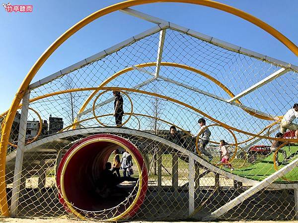 【新竹|親子旅遊】香山水資源公園,保留2018兒童藝術節風的運動場特色遊具-迎風追逐、林間推拉車、搖擺大花(彈塗魚),親子公園