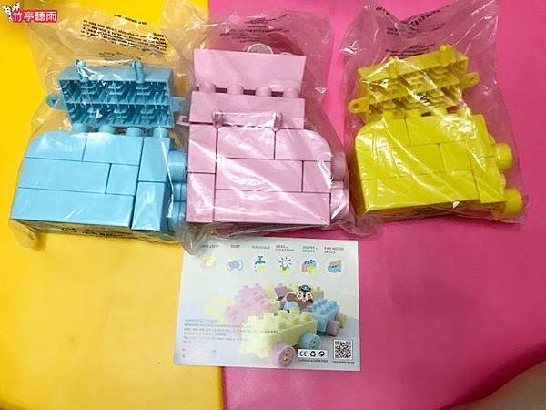 打開後有一張說明書與三包顏色的Block Junior軟積木~