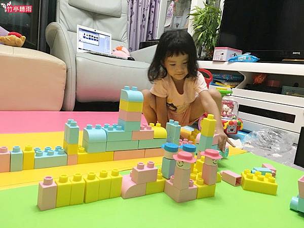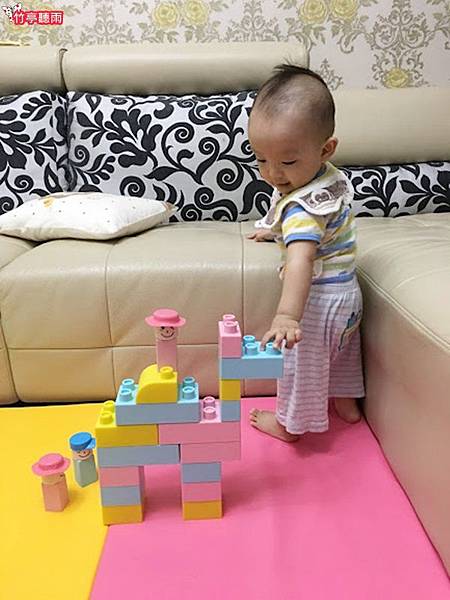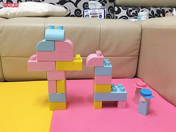 而且這些積木不但可以有些幅度的彎曲,另一個優點是掉到地上也不會吵唷
