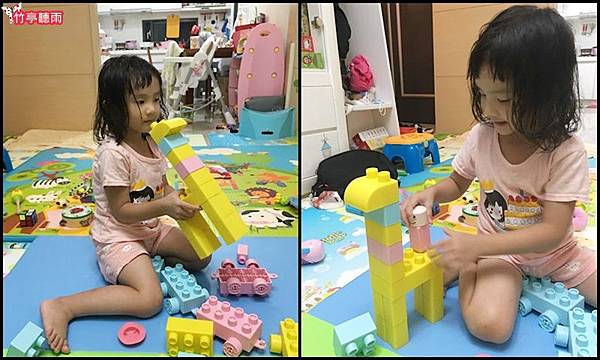 小小咪看過一遍後就會自己做長頸鹿了,常常玩積木玩具真的可以培養3D空間概念感。