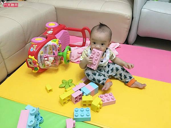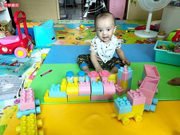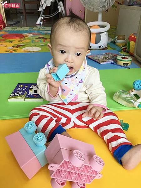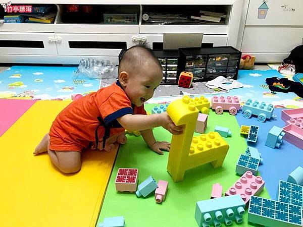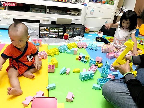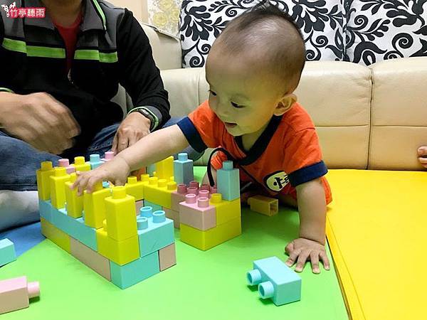 但適合嬰兒把玩啃咬的軟質積木通常都很簡單,能組合的形狀太少,對姊姊來說沒什麼吸引力。因此小咪媽咪一直很苦惱有沒有適合兩寶不同年齡層都喜歡玩的積木呢?