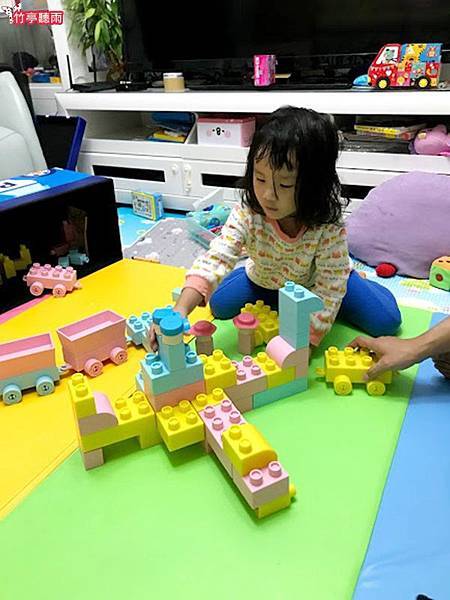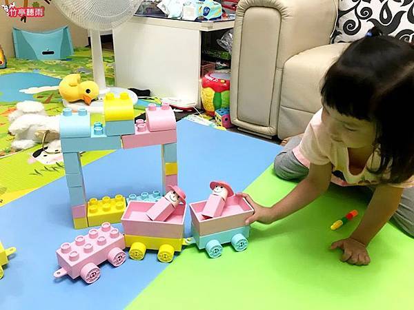 火車出發囉! 小小咪已經到了喜歡玩扮家家酒的年紀,光是用這些積木玩火車遊戲就可以玩一個晚上。