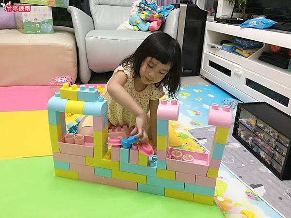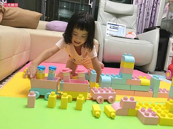 小小咪一向都很愛玩積木類型的建構玩具,家裡也有買了各式各樣材質與形狀的積木給她玩。在充滿創意的爸爸陪玩下,小小咪年紀雖小卻也耳濡目染地學習了許多蓋積木的心得技巧,也漸漸開始會發揮小人兒的天馬行空創意,蓋出各種充滿想像力的作品,讓媽媽自嘆弗如。