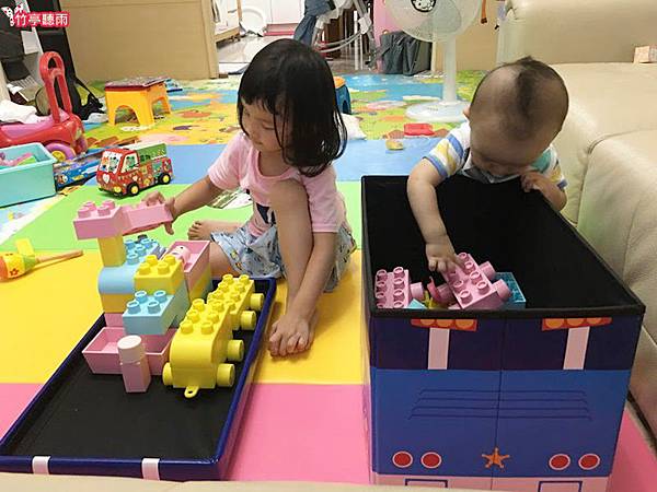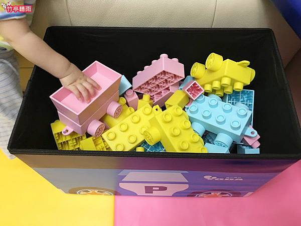 小咪媽咪發現Block Junior軟積木因為體積大,很適合放在收納椅中,打開椅子就可以玩積木很方便。