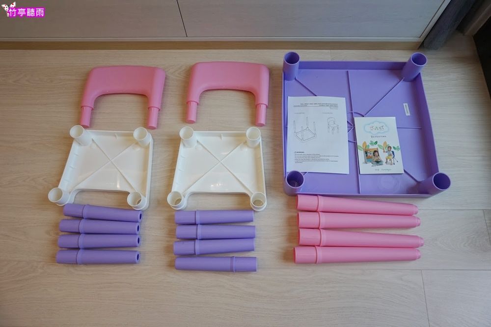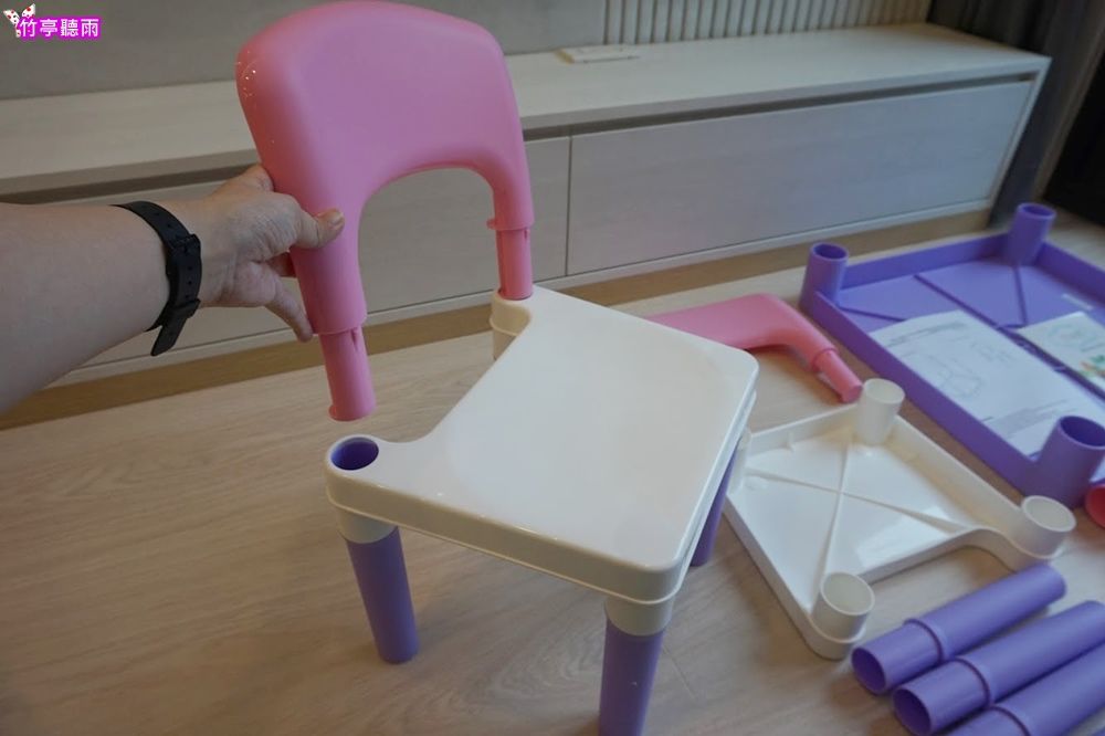 先拿出桌椅組來組裝。雖然是塑膠製品,