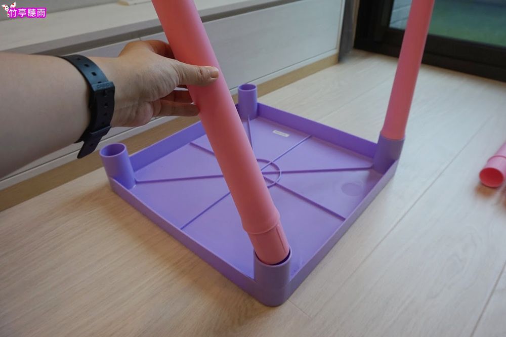 接下來來組裝玩具收納架吧。與桌椅同套的組合,有著相似的配色。