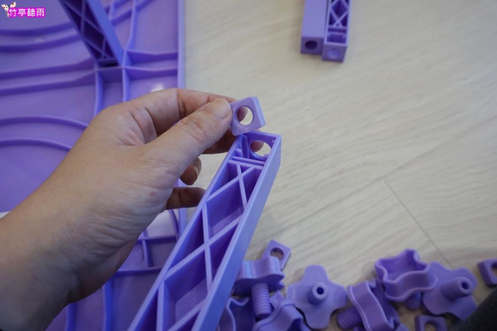 ▼ 在安裝前記得要先把12個螺帽塞到6根橫桿的兩端洞裡。