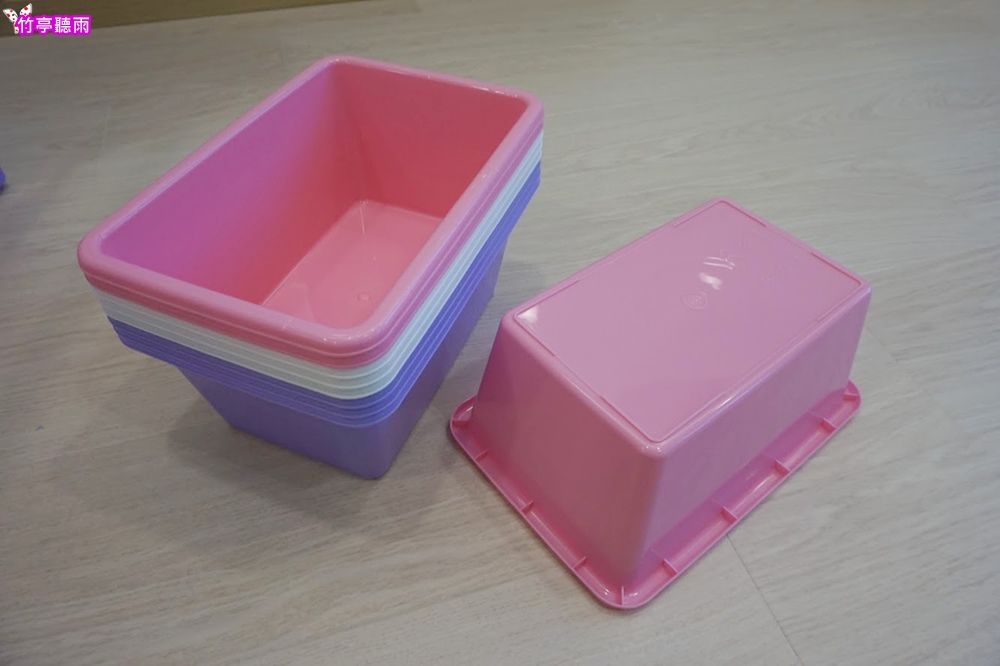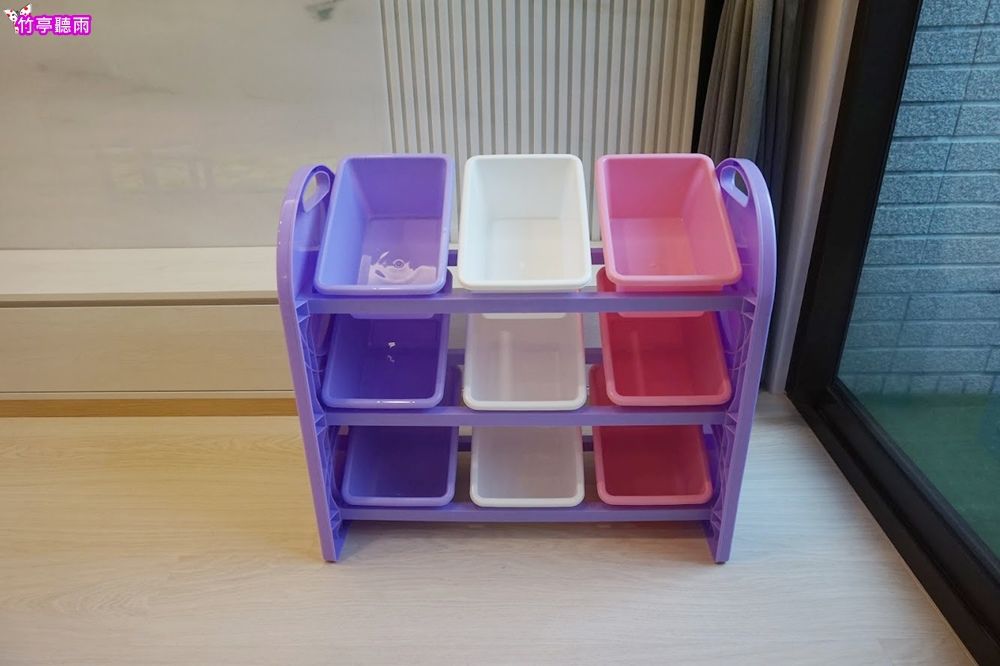 ▼ 三種顏色的收納箱各三個,總共有九個。
