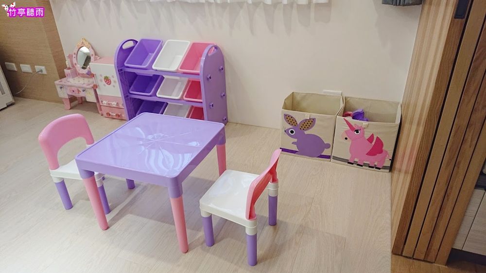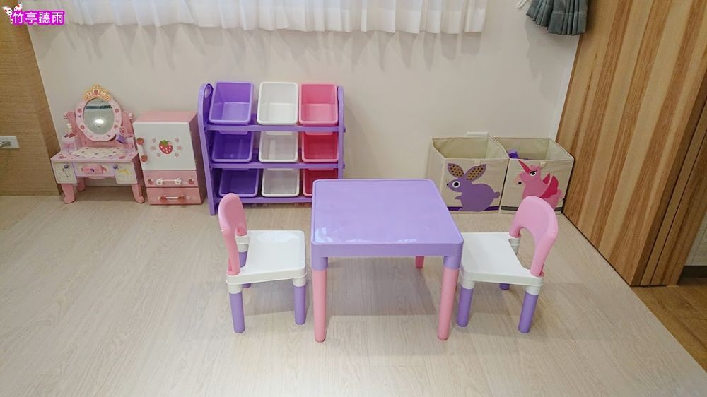 如果家裡還沒有幫幼兒買桌椅,不妨考慮這套可愛又夢幻的DELSUN兒童玩具收納架+兒童桌椅組吧~