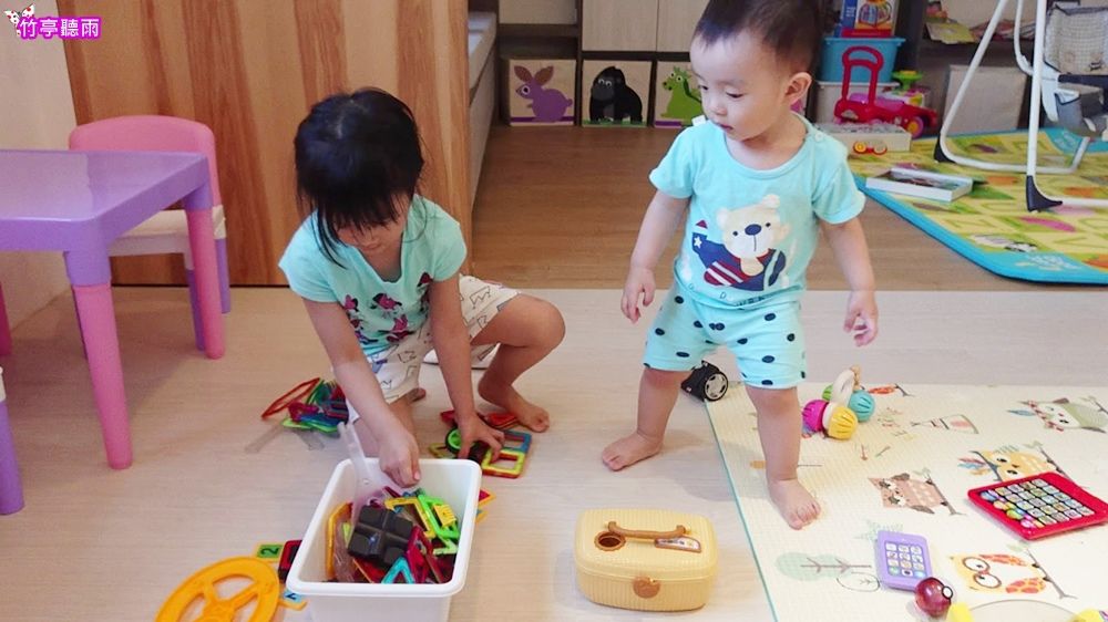 姐姐忙著收納,弟弟忙著把玩具拿出來 XDDDDD