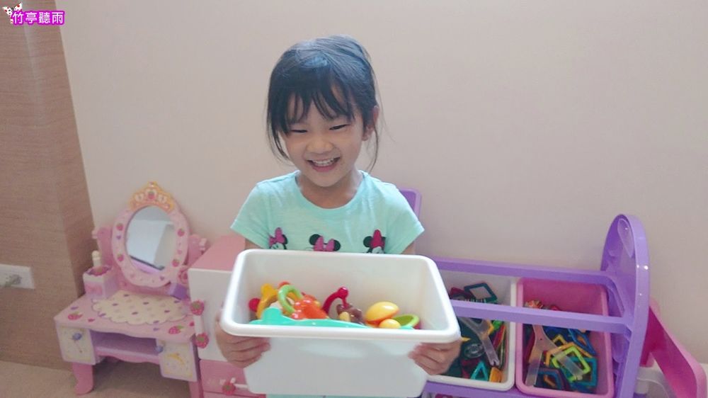 小小咪自己從收納架拿玩具跟收放玩具都很熟門熟路的樣子: