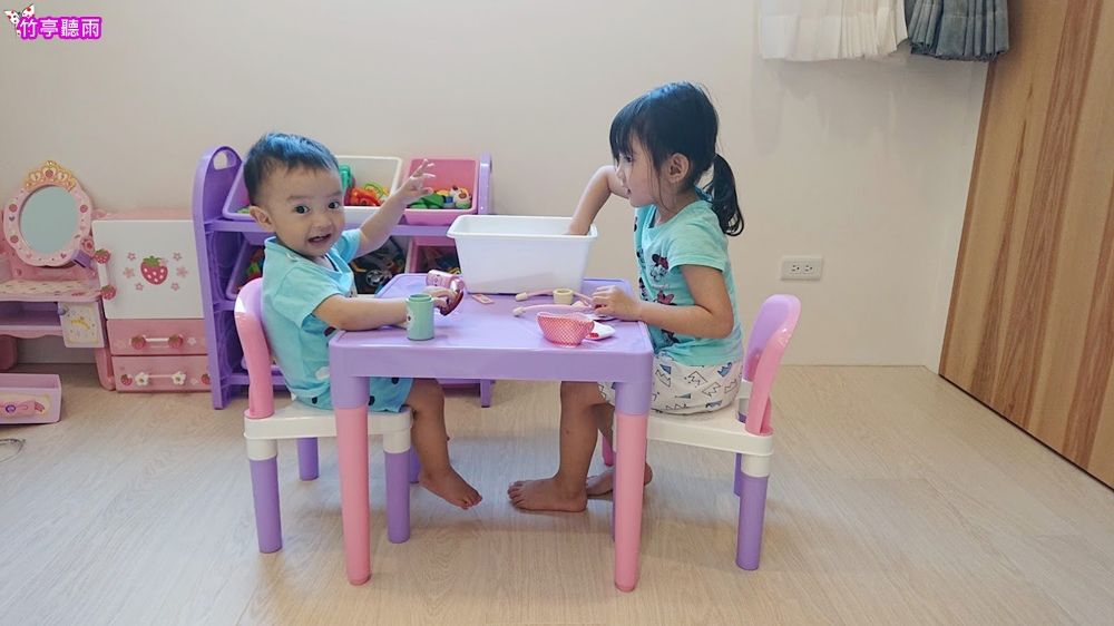 剛好媽咪拜推出DELSUN兒童玩具收納架+兒童桌椅組夢幻粉紫優惠組合,