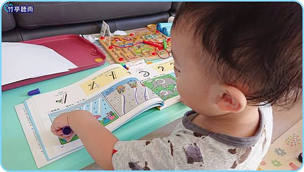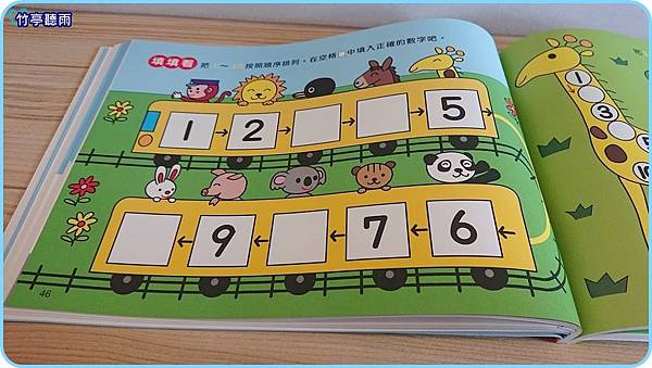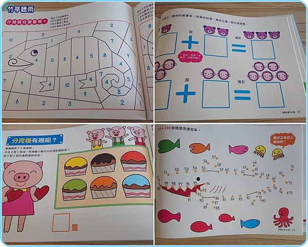 這本書設計得很有趣,用鮮明可愛的插圖吸引小孩的注意力,搭配著色畫與各種遊戲,在玩耍中學數學,很適合幼兒啟蒙用,蠻推薦的唷!