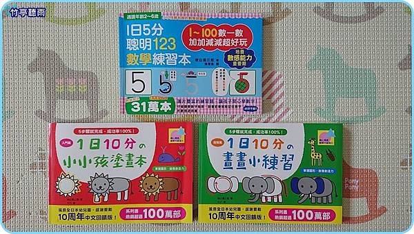我也是看到這個插圖風格覺得很眼熟,仔細一看才發現這本1日5分聰明123數學練習本跟我家的1日10分的小小孩塗畫本系列是同個作者: 邱山風三郎! (其實書名也很像~一開始沒聯想到)