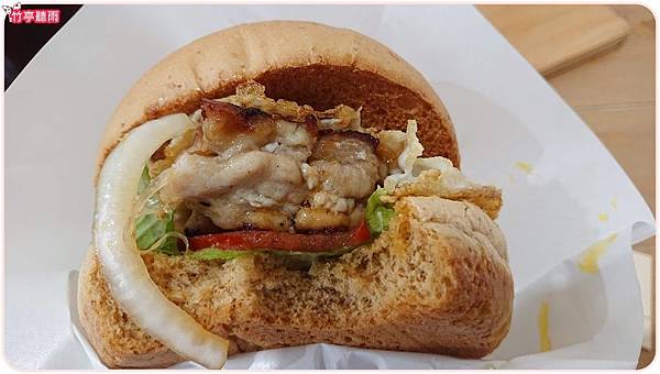 雞腿肉也不錯,很肥美~咬起來油汁汁的,搭配生菜增加一點爽脆感,是個美味的漢堡。會想再來吃~