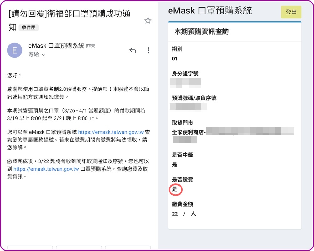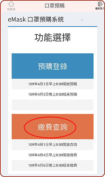 就要自己登入eMask網頁選繳費查詢(簡易查詢版),記錄下來每個人的取貨編號。