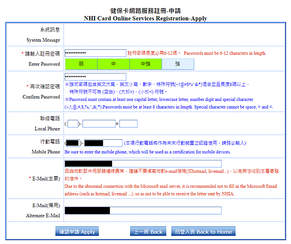6. 填寫健保卡網路服務註冊-申請表: