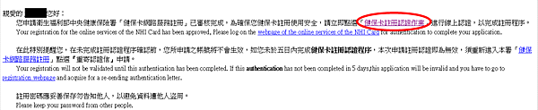 9. 去收email: [衛生福利部中央健康保險署-健保卡網路服務註冊-認證通知信,點選內文的【健保卡註冊認證作業】