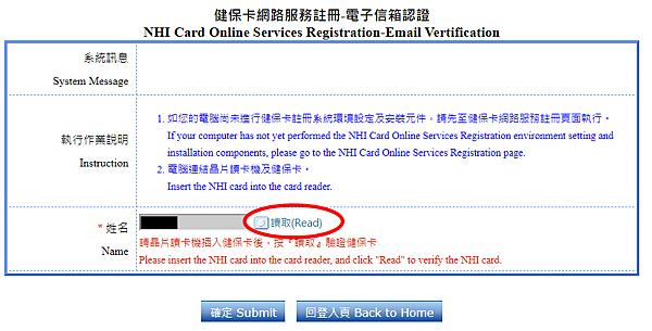 10. 在網頁內按【讀取】驗證健保卡後按完成。