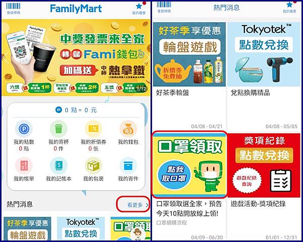 2. 或是用超商的APP,要註冊會員,按APP裡的口罩領取: