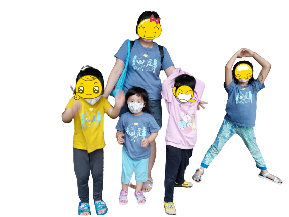 ▲ 2022年愛T恤,爸爸XL(沒入鏡),媽媽?,7Y小小咪穿130,4.5Y球寶穿110,3Y團團穿110