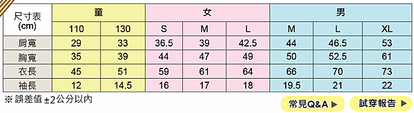 先說我家是胖爸爸(174cm)跟胖媽媽(158cm)身材,所以大人無懸念直接買XL跟L號。
