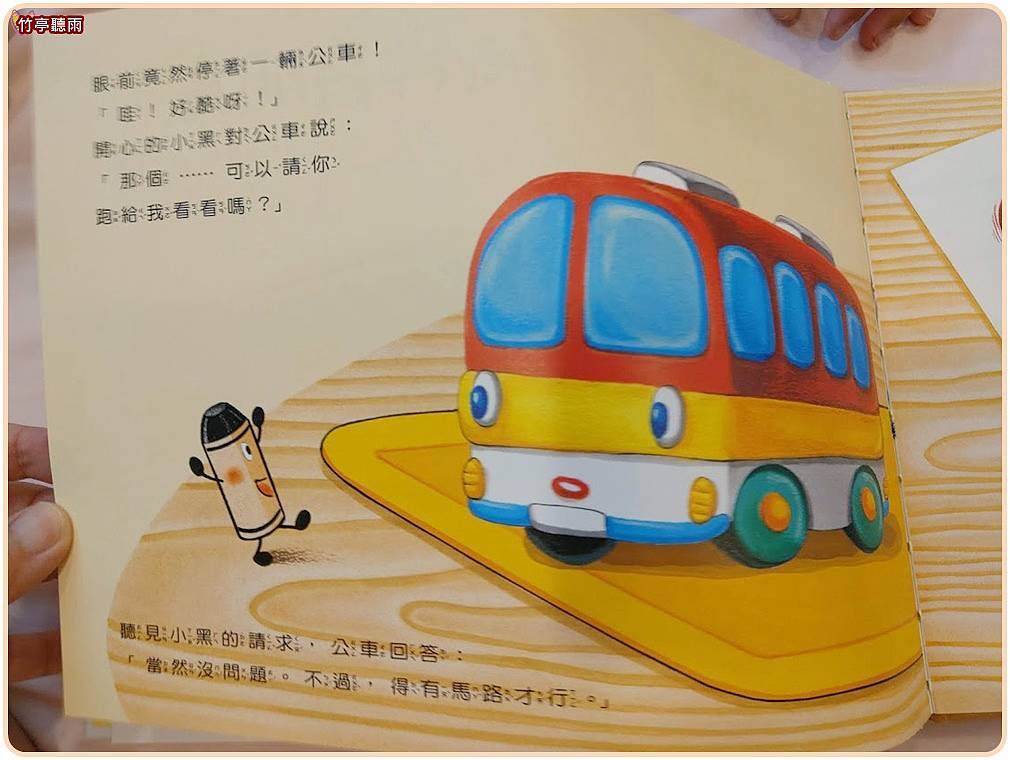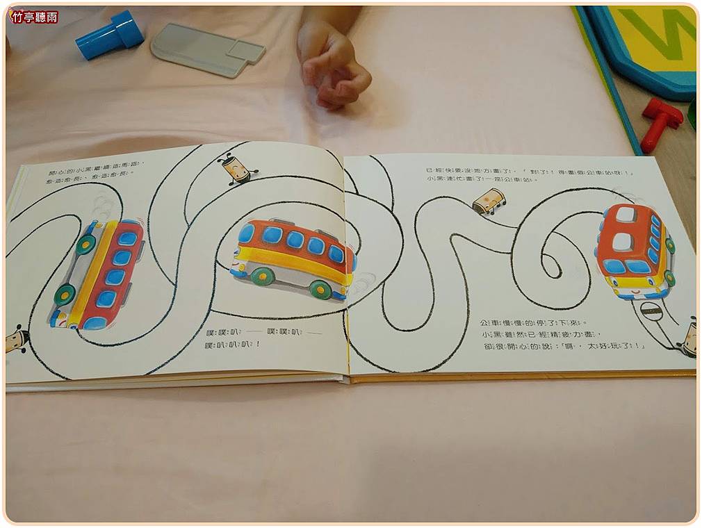 畫到紙張的邊緣時(也真的是書本的邊緣),小黑畫了一個公車站牌讓他停下來。