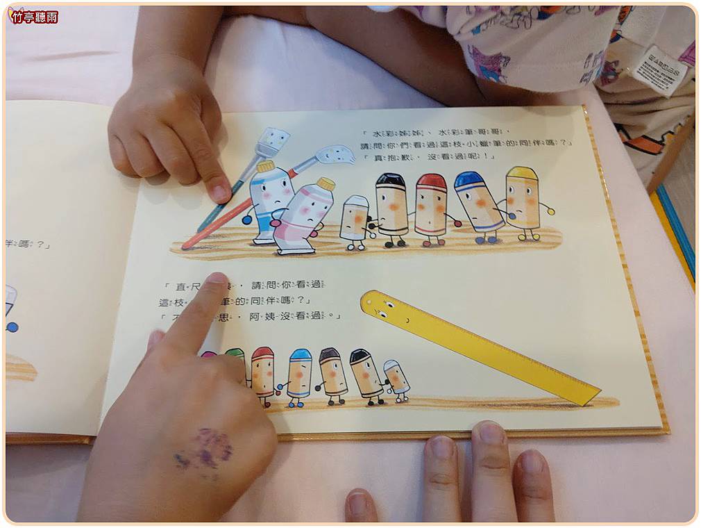 問了橡皮擦、水彩、直尺,大家都說沒看過這隻小蠟筆的同伴。