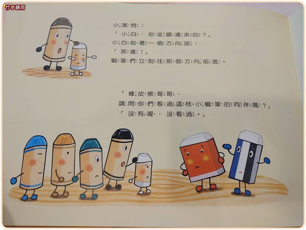 原來是一隻迷你的白色蠟筆,他找不到同伴,於是大家就幫忙尋找。