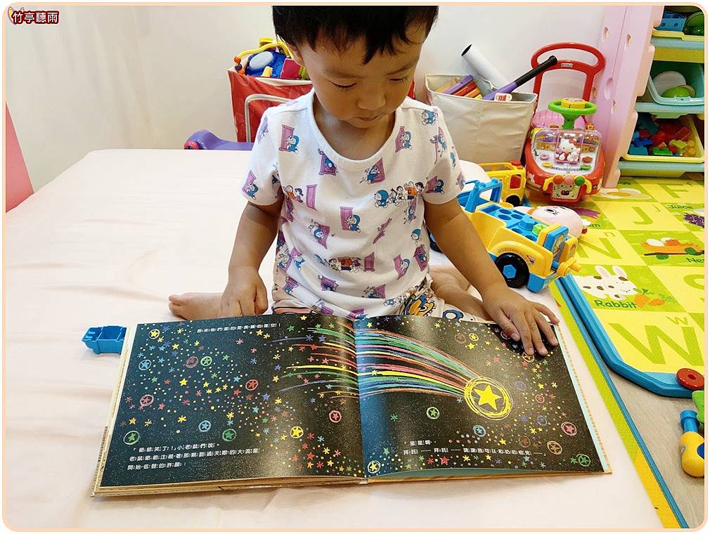 小黑也來了以後,十色蠟筆齊聚,他們合力畫了一張美麗的星空,還有一顆閃亮的大流星。