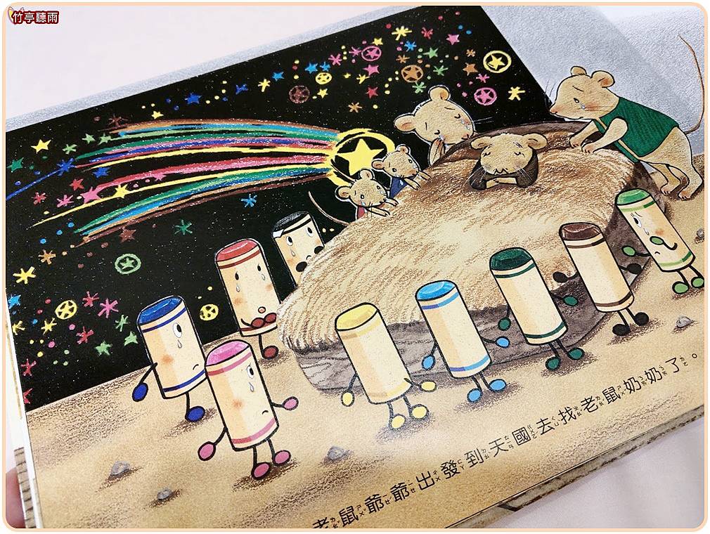 隔天,老鼠爺爺就去天國找老鼠奶奶了,看到這兒令人鼻子一酸,蠟筆們也都垂淚了。