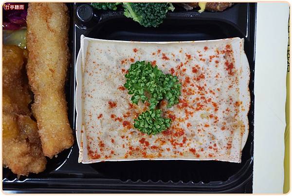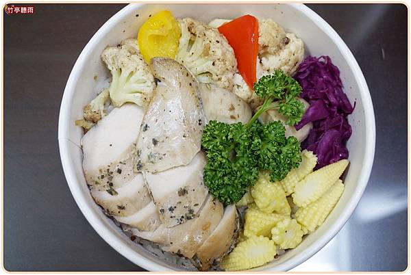 圓形的平價餐盒適合平日揪團訂購,配菜仍有經過搭配,一個餐盒可以吃到各色菜蔬。