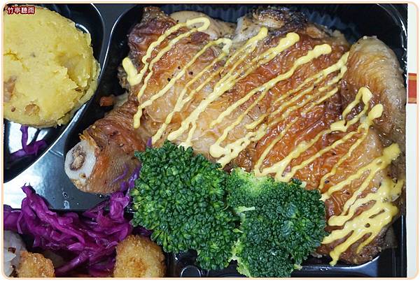 雞腿控的我選擇的是這款餐盒,烤的恰到好處的多汁無骨雞腿排,上面淋著甜甜的黃色芥末,吃起來甜甜蜜蜜脂滑油順,還帶有普羅旺斯香草香氣,非常下飯。