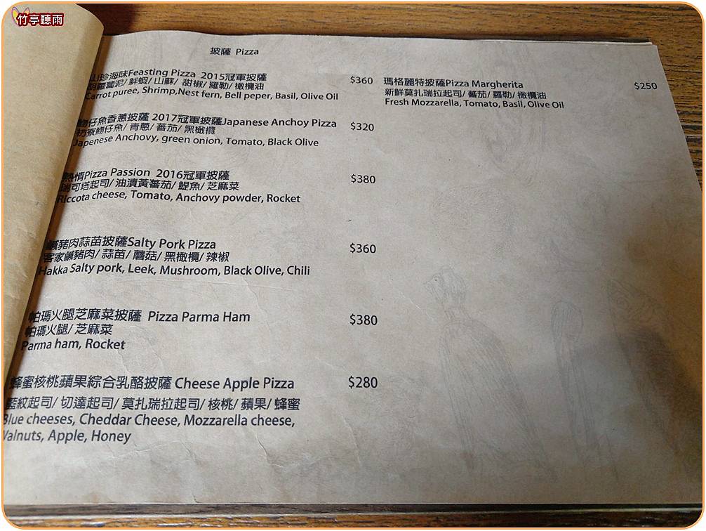 這間披薩(250~380元)聽說很特別,很推薦點點看。我們點了前三種口味的冠軍披薩。