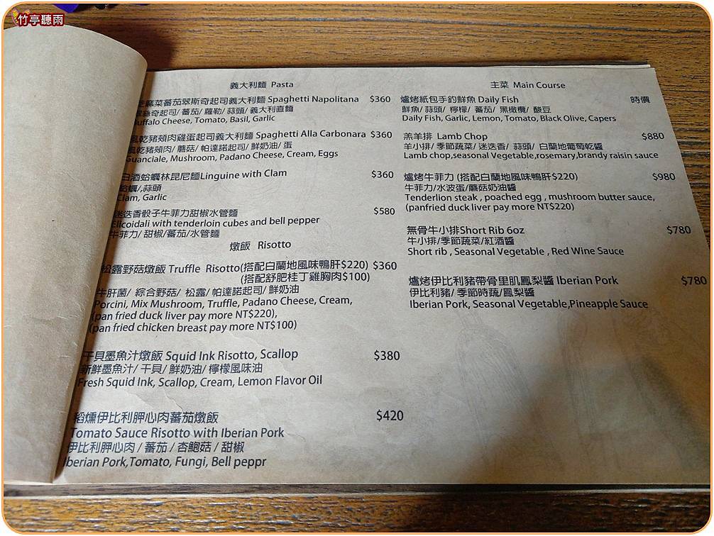 義大利麵360~420元,排餐類780~980元