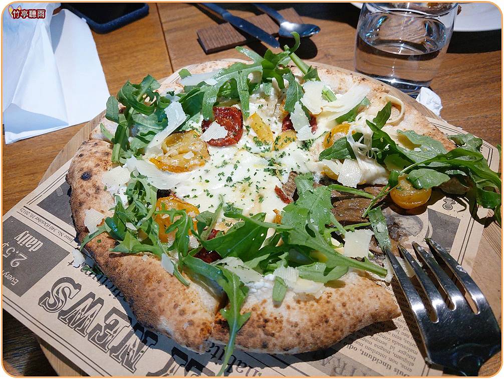 熱情冠軍披薩有一堆芝麻菜在上面XD