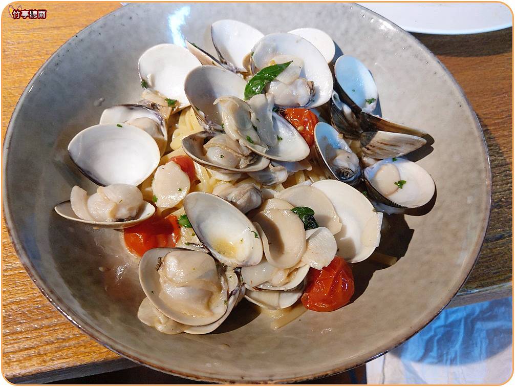 白酒蛤蠣林昆尼麵: 蛤蠣蠻大顆的,但分量不大,同事認為竹北的艾**CP值較高。