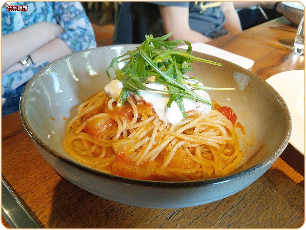 芝麻菜番茄翠斯奇起司義大利麵: 上面有一大坨起司,混入麵中更美味。