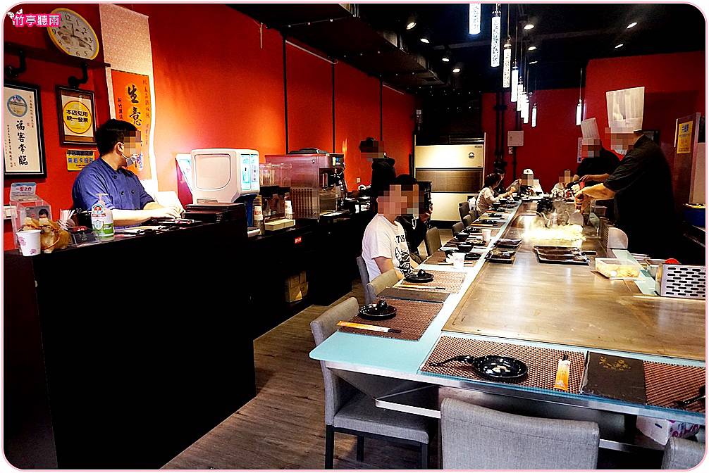 店內格局簡潔,一座大U字型鐵板區,有兩位師傅在裡面料理,客人們就坐在外圈。