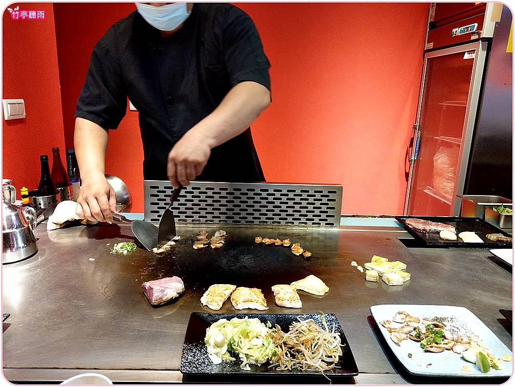 吃鐵板燒的一個樂趣就是觀看師傅現場煮菜,而且因為現場點餐的客人需求都不同,師傅常常需要快速在腦海中安排順序,來同時煎各種肉類,加各種調味,以達到快速出餐的目的。觀看他們龍飛鳳舞的鍋鏟和行雲流水的手勢,真的覺得術業有專攻呢!!